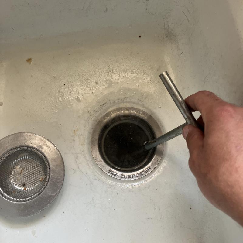 A plumber in Humble, TX repaired a jammed garbage disposal that had blocked a customer's drain. The technician unjammed the disposal blades and cleared the sanitary sewer line to restore proper drainage.