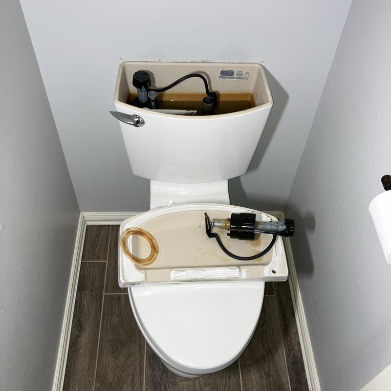 A homeowner in Houston, TX had a toilet in the master bathroom that kept running due to a corroded fill valve and flapper. Sentinel Plumbing LLC replaced the faulty parts and tested the toilet by flushing it multiple times to confirm proper operation. The toilet repair is complete and functioning correctly.