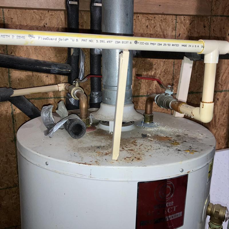 Sentinel Plumbing LLC replaced a leaking water heater in Willis, TX. The team shut off the water supply, replaced the isolation valve, and installed a new unit. They completed new natural gas connections, water lines, and a drain pan with a drain line to ensure proper function and safety.