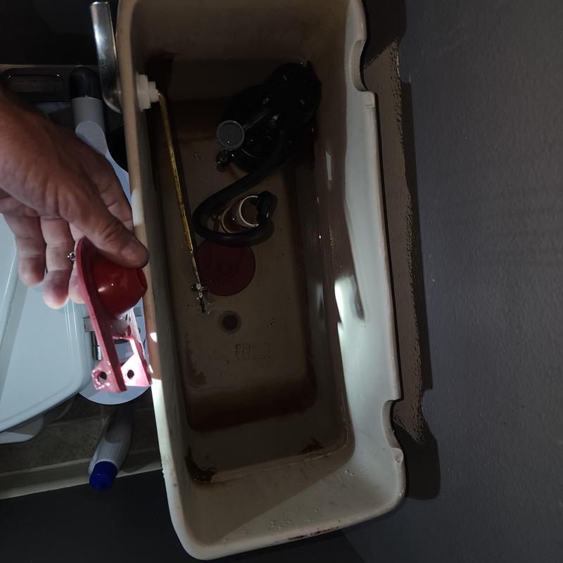 A plumber in The Woodlands, TX repaired a master bathroom toilet that was continuously running. The contractor replaced a corroded fill valve and leaking flapper. After installation, the plumber flushed the toilet several times to confirm correct function. The job was completed successfully.