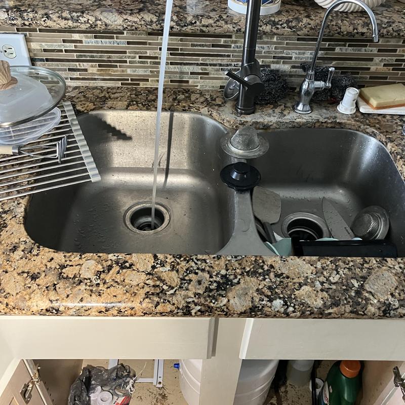A plumber in Houston, TX repaired a jammed garbage disposal that was preventing the blades from spinning. The team also performed a drain cleaning to remove debris causing a stoppage in the sanitary sewer line. This service restored proper drainage and disposal function in the kitchen.